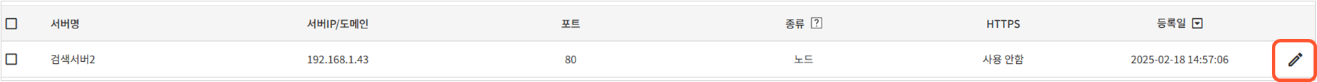 1. 검색 서버 목록에서 정보를 수정하고자 하는 서버 우측의