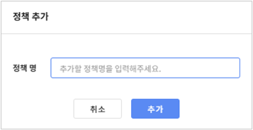 정책을 변경할 경우에는 3번 단계로 넘어갑니다. ‘정책 추가’ 창에서 추가할 정책명을 입력하고 추가 버튼을 클릭합니다.