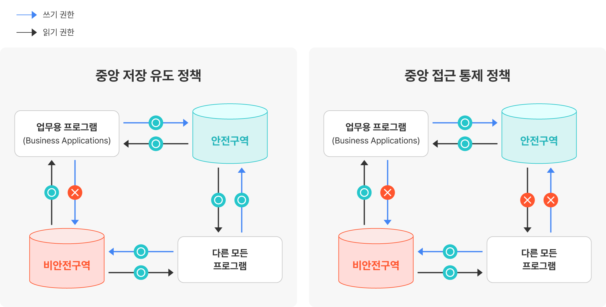 중앙 저장 유도 정책 | 중앙 접근 통제 정책 | |