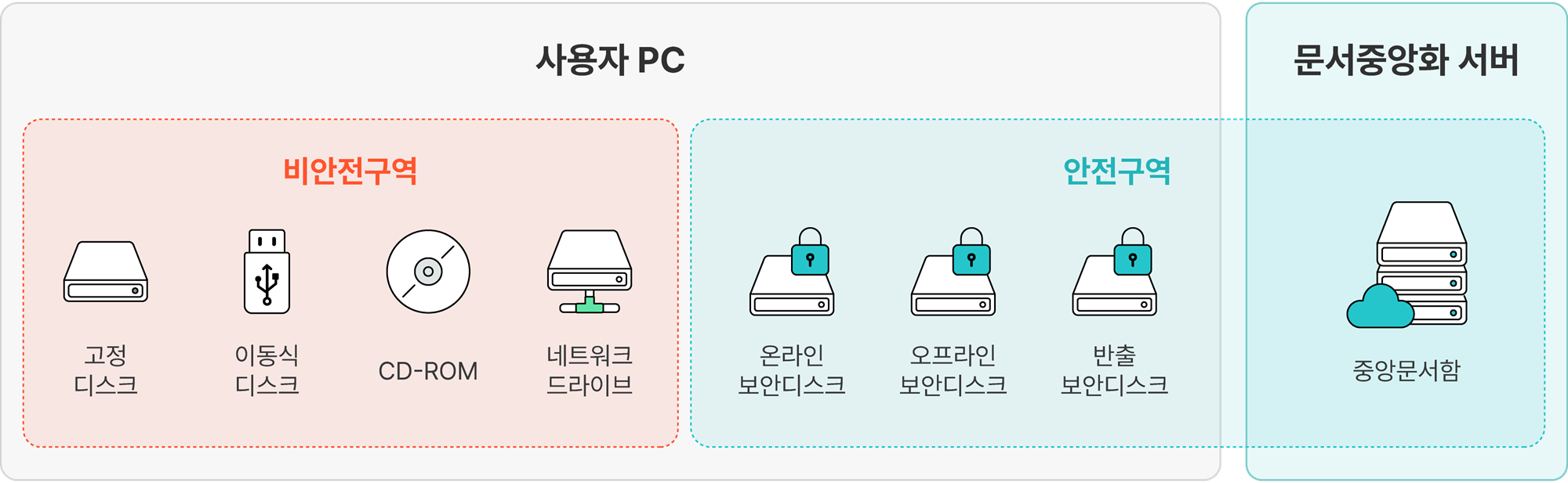 온라인 보안디스크, 오프라인 보안디스크, 중앙 문서함 |