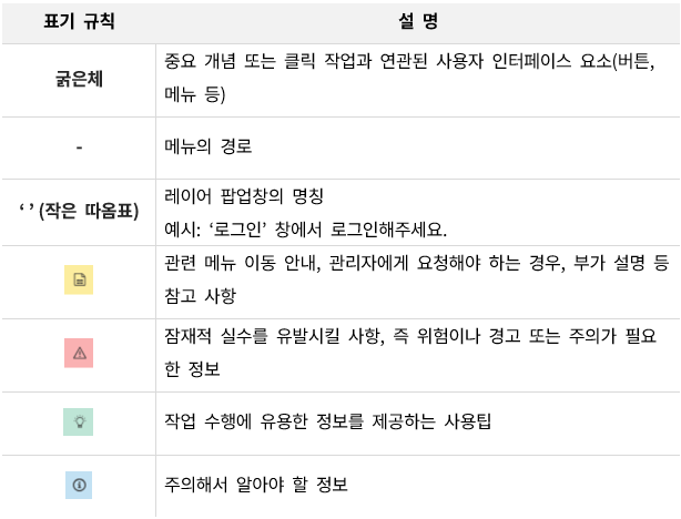 본 매뉴얼에서는 편의상 멀티도메인 환경을 기준으로 서비스 관리자, 시스템 관리자가 담당하는 기능을 구분하여 표시합니다. 따라서 싱글도메인의 경우, 매뉴얼에서 서비스 관리자의 업무로(서비스 관리자 페이지에서 제공되는 것으로) 표시된 기능이 실제로는 시스템 관리자 페이지에서 제공되며, 시스템 관리자가 사용할 수 있습니다.