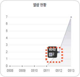 그래프의 데이터 포인트로 마우스 커서를 가져가면 해당 날짜의 정확한 데이터 값을 볼 수 있습니다.