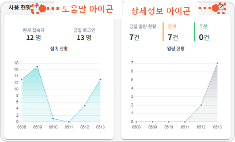 대시보드 화면에는 다음과 같은 현황 정보가 표시됩니다.