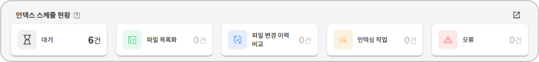 인덱싱 스케줄 현황에서는 등록되어 있는 인덱싱 스케줄 중 현재 각 단계에 해당하는 스케줄의 건수를 확인할 수 있습니다.