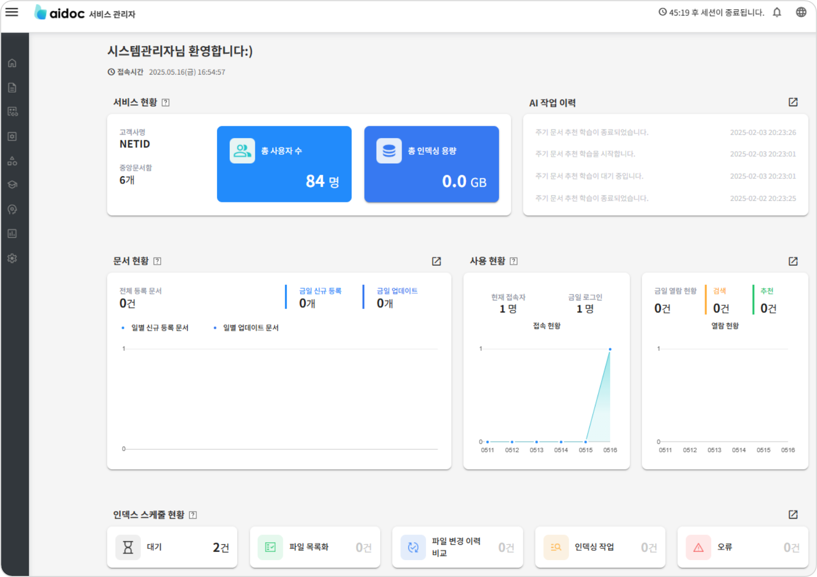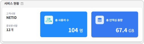 aidoc 검색 서버에 인덱싱된 고객사의 문서 현황 정보를 보여줍니다.