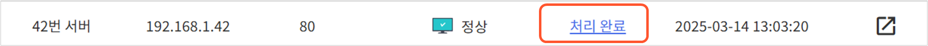 3. 서버 장애 목록에서 해당 서버의 장애 처리 상태가 변경된 것을 확인합니다.