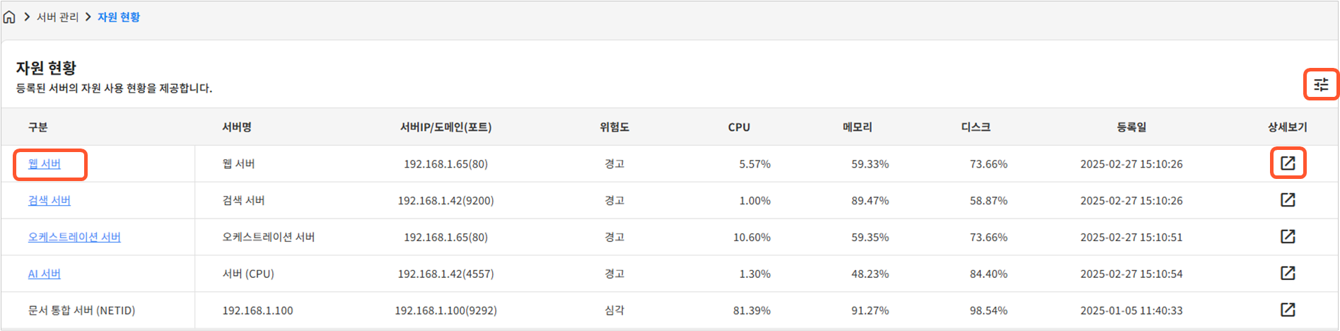 서버별 서비스 상태 확인 및 장애 처리 결과 등록하기