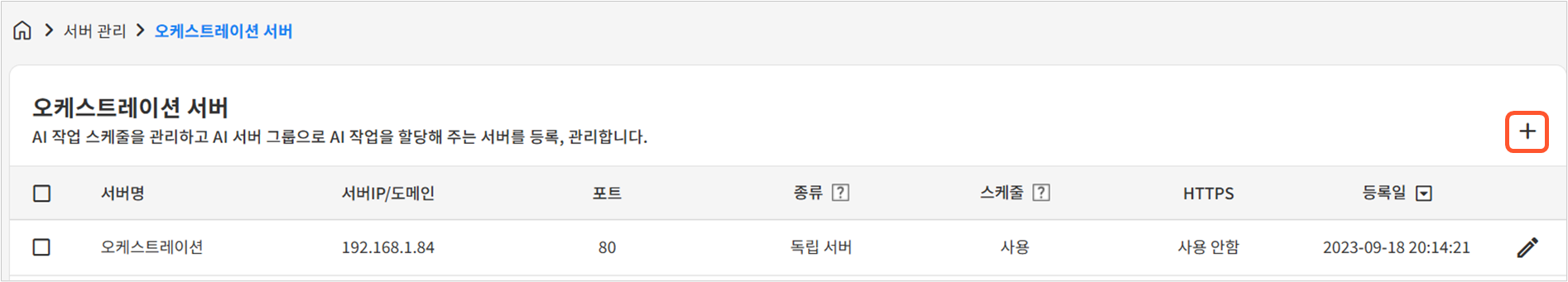 AI 서버는 문서 벡터화, 유사 문서 추천, 카테고리 생성, 전문가 추천 등 AI 작업을 수행하는 서버입니다. AI서버 그룹은 시스템 자원의 효율적 사용을 위해 AI 서버들을 보유한 자원(CPU, GPU, 또는 CPU & GPU)에 따라 그룹화한 것으로, 오케스트레이션 서버가 AI 작업을 할당하는 단위가 됩니다. 시스템 관리자는 관리자 웹페이지에서 AI 서버 그룹을 등록하고 수정, 삭제할 수 있습니다. AI 서버 그룹 등록하기 1. 서버관리 – ...