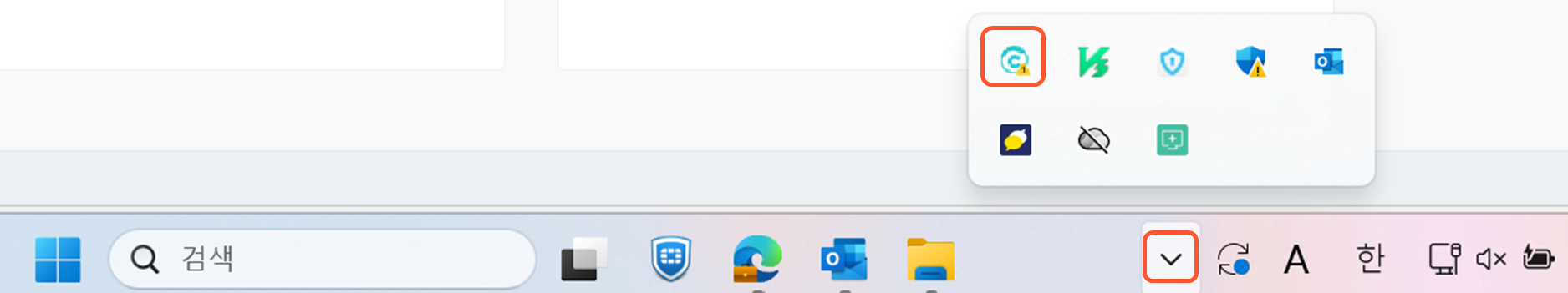 윈도우 에이전트 트레이 메뉴는 윈도우 작업 표시줄의 트레이 아이콘 을 마우스 우클릭하여 사용할 수 있습니다.