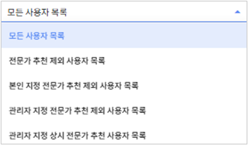 ② 관리자 지정 추천 제외 사용자 등록: 등록된 사용자는 전문가로 추천되지 않습니다.