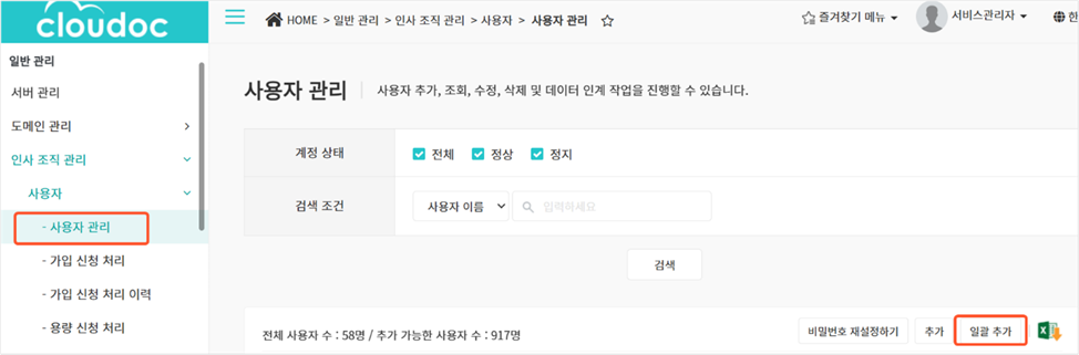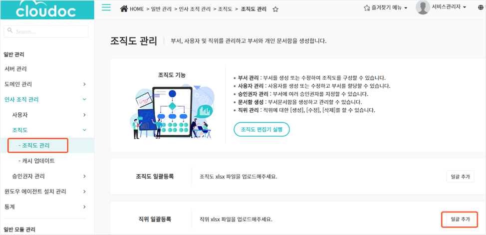 관리자 빠른 시작 가이드 – 문서중앙화 사용자 및 조직도 생성하기