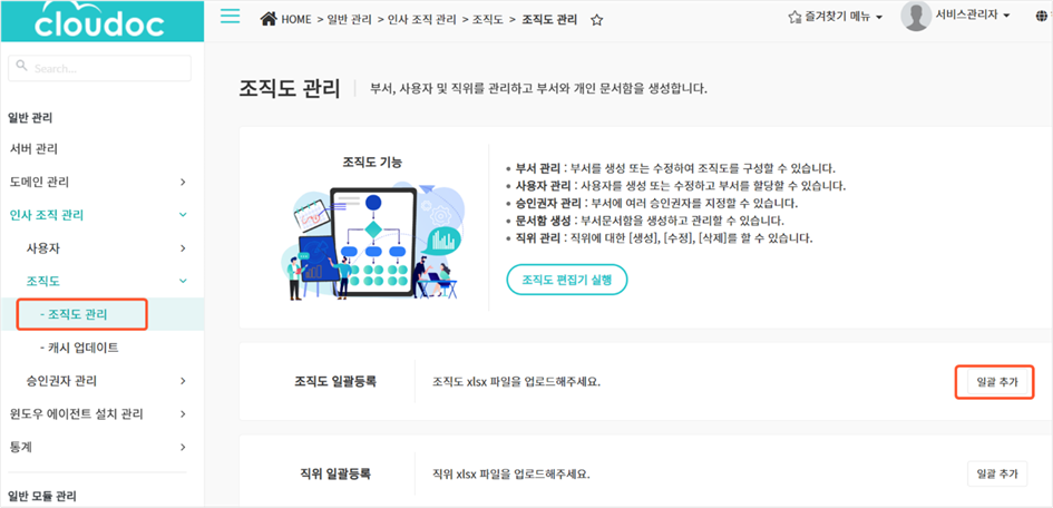 조직도 및 사용자 일괄 등록하기
