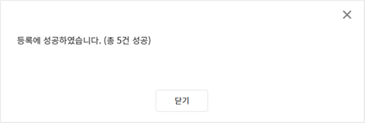 5. 등록에 성공하면 아래와 같이 성공 메시지(등록한 직위 개수)가 표시되고, 등록한 직위가 서버의 조직도에 추가됩니다.
