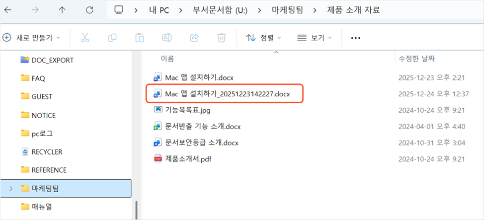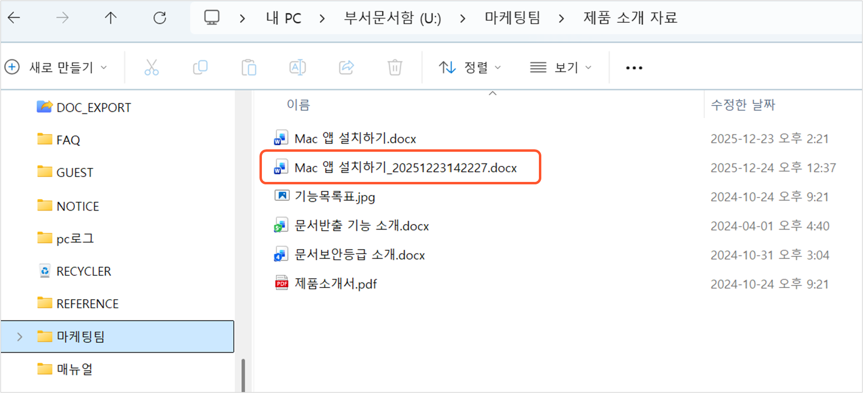 4. [원본파일명_수정일시] 이름의 파일로 복원됩니다.