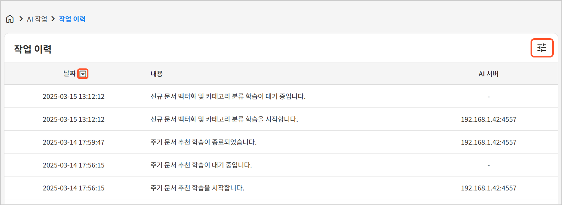 AI 작업 현황 확인하기