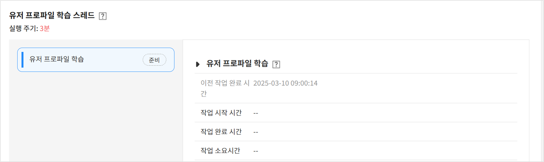 유저 프로파일 학습 작업을 수행하는 스레드로, 정해진 주기에 따라