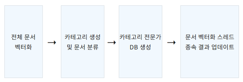 신규 문서 벡터화 작업은 새롭게 작성된 문서와 수정된 문서에 대해서 문서의 벡터값을 설정하고 카테고리를 분류하는