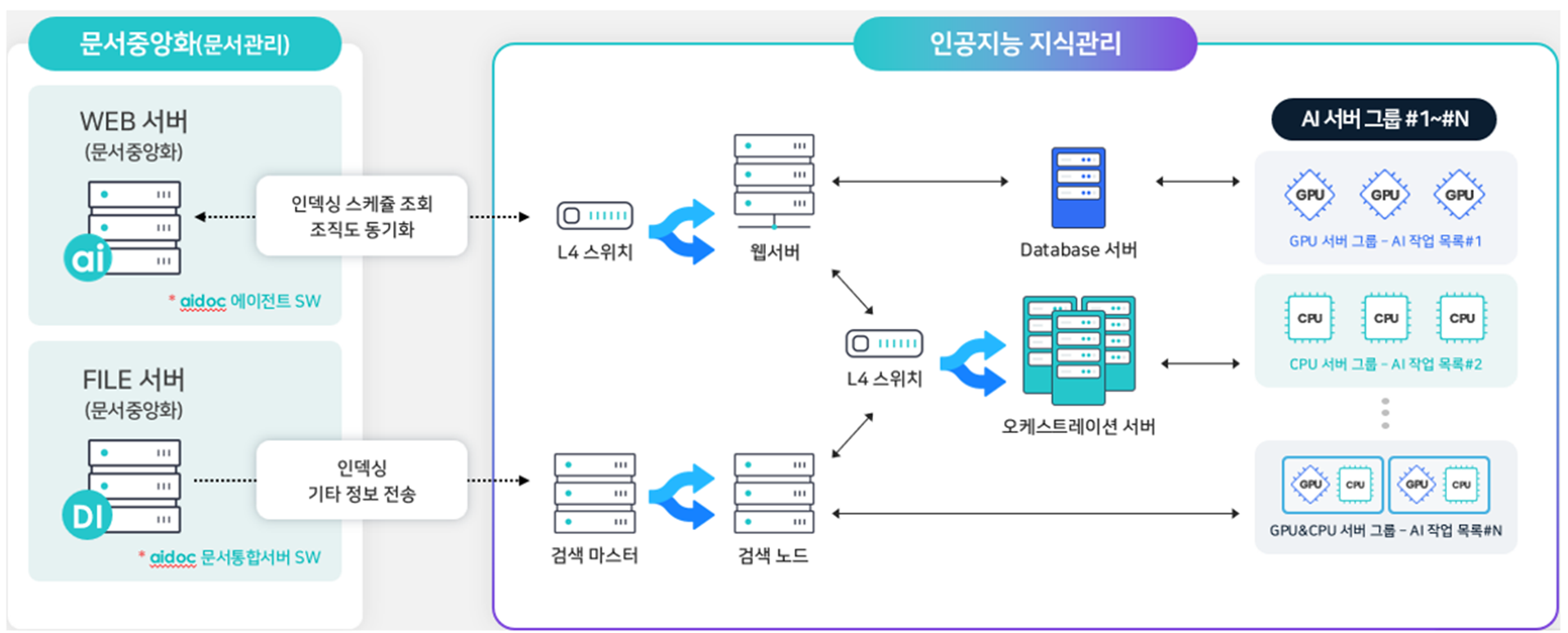 조회하는 역할을 담당합니다. aidoc 에이전트는 고객사의 문서중앙화 웹서버에 설치됩니다. |