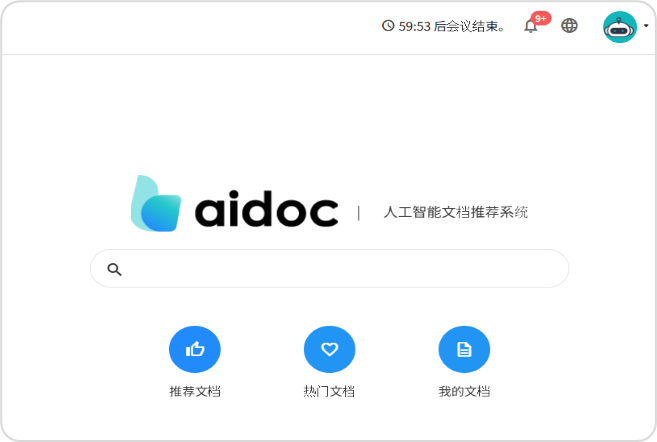 aidoc 웹 서비스의 시작 화면인 Home 화면은 다음과 같이 ❶ 상단 메뉴 아이콘, ❷ 문서 검색 창, ❸ 웹 서비스 바로가기로 구성되어 있습니다. ❶ 상단 메뉴 아이콘 세션 만료 시간 자동 로그아웃까지 남은 시간을 표시합니다. aidoc 웹 서비스에 로그인한 후 로그인 유지 시간이 경과하면 자동으로 로그아웃되며, 자동 로그아웃 1분 전에는 다음과 같은 ‘로그인 연장 안내’ 창이 나타납니다. 로그인 연장을 클릭하면 로그인 유지 시간만큼 ...