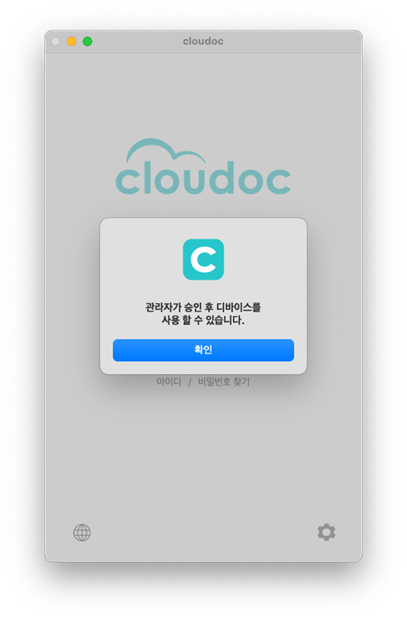 이 경우 서버에 등록되지 않은 Mac 디바이스로 처음 접속할 때 Mac 디바이스 등록을 신청해야 합니다. 등록 신청이 된 Mac 디바이스는 관리자의 승인을 거쳐 등록이 완료됩니다.